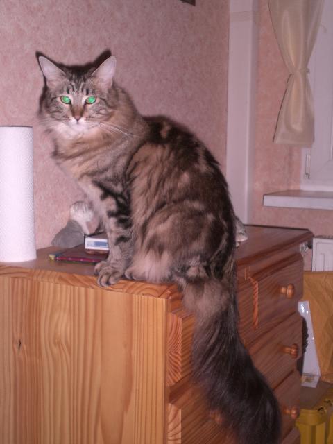 Coon Dame. Beim Fressen ist Sie am liebsten ungestört, aber mit den